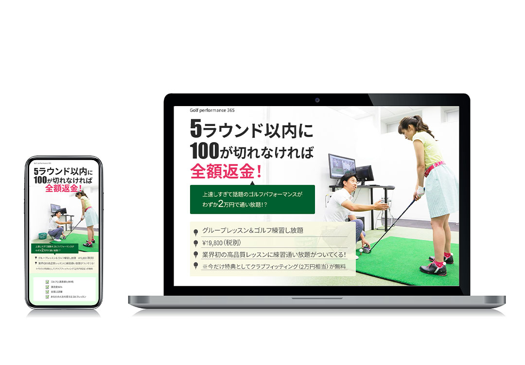 ゴルフ練習スタジオLP(PC/スマートフォン)(サンプル) 2025年10月23日 最終更新日時 : 2025年10月26日 misatwin@gmail.com 目的 ゴルフ練習スタジオへの誘導 ターゲット 50代~60代男性ゴルファー向け デザインポイント 講師の信頼感が伝わること、またスタジオでどのような指導が受けられるのかイメージできる写真を選定しました。キャッチコピーを目立たせターゲットに刺さるデザインにしました。 \ 最新情報をチェック /